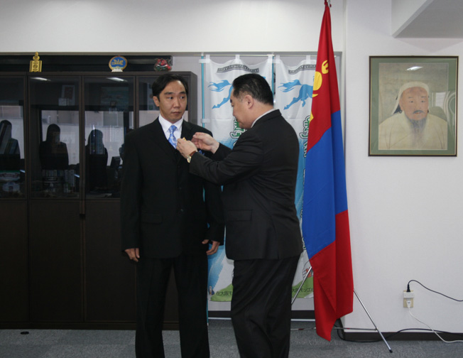ALTAN GADAS(モンゴル国北極星勲章)は、モンゴル国大統領から与えられる最高位の勲章であり、モンゴル国の経済、文化、技術等の交流に大きく寄与した人、発展に貢献した人におくられています。