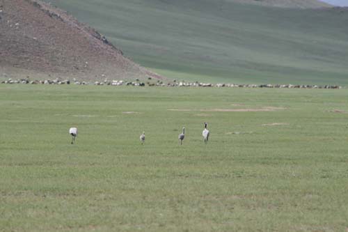 | 家族のトグロー(鶴の仲間)が歩いていました。 | 運転していた草原を子ギツネがかけていきました。 |