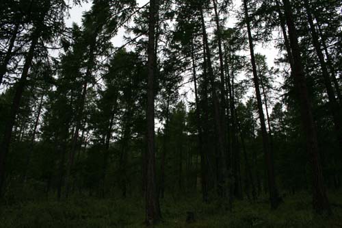 | モンゴルにはもみの木の森林が多い。 | 森林の中の様子。 |