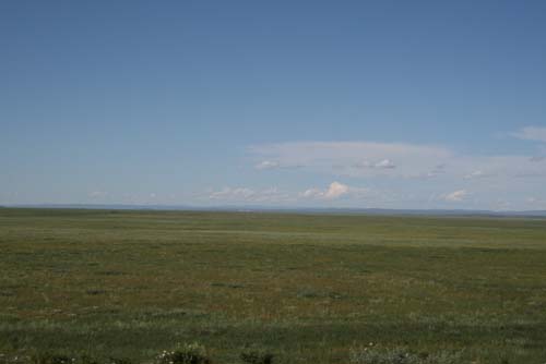 | 丘や山のないとても広い草原地帯がありました。 | その草原の反対側に広がる自然の花畑。 |